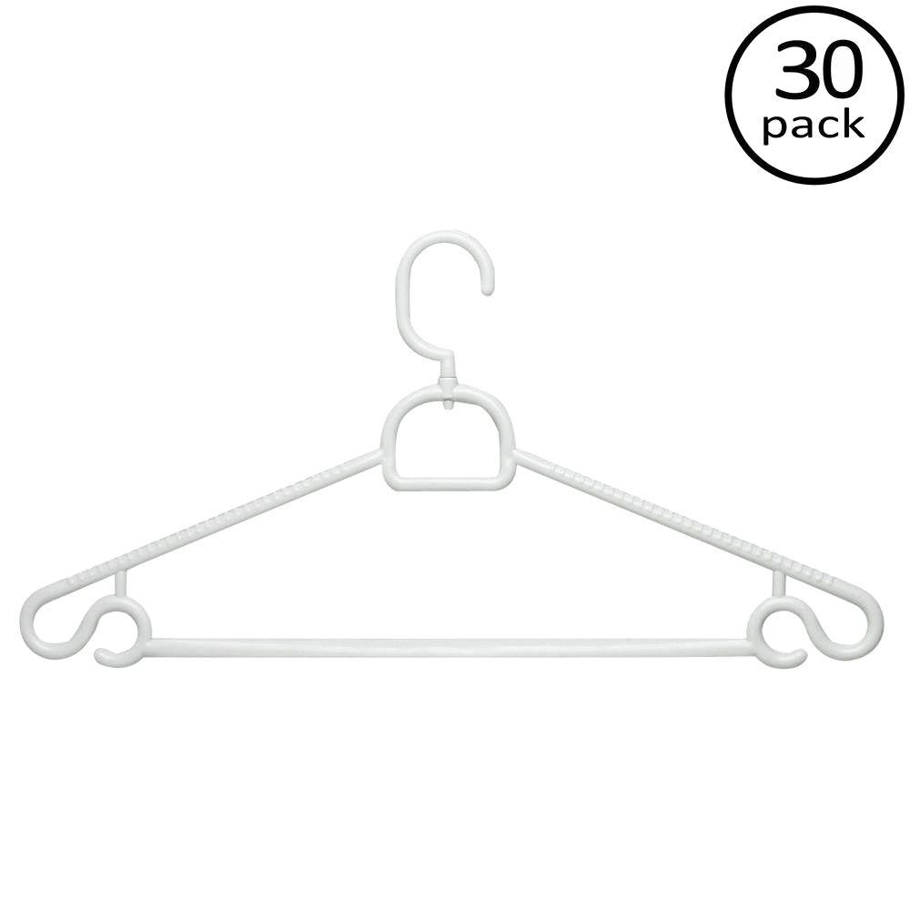 10 pack of white plastic tubular hangers. They're easy to use and pretty sturdy. Store supply's strong white hanger clips with silver hook are excellent for use as boot hangers or on racks & hangrails. There are 7640 hanger with clips for sale on etsy, and they cost $20.34 on average.