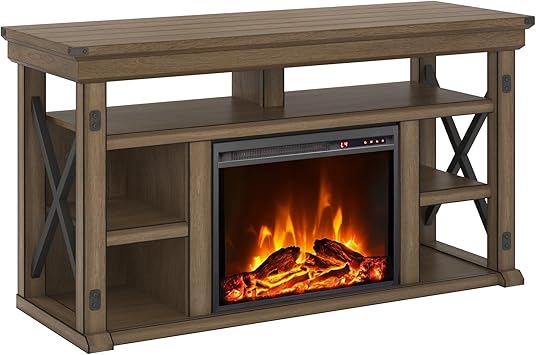 Simply remove the adjustable center shelf pop in the fireplace insert (optional) and enjoy the cozy feel of a crackling fireplace without the hassle maintenance or cleanup. Fireplace tv stands are ideal indoor smokeless fireplaces. More on the walker edison 60 inch tv stand with fireplace insert (brown) w58fp18tb below. The electric fireplace tv stand console from ameriwood home farmington can bring the outdoors inside your home with a unique rustic look because of its weathered look with a medium brown wood grain texture.