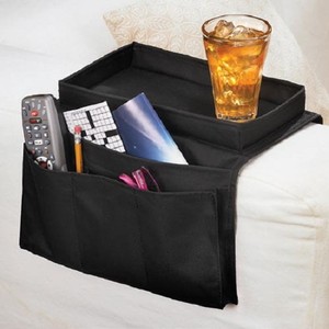 Here we have remote control caddies that fit over the armrest, as well as check it out to see why this caddy is so highly rated.
