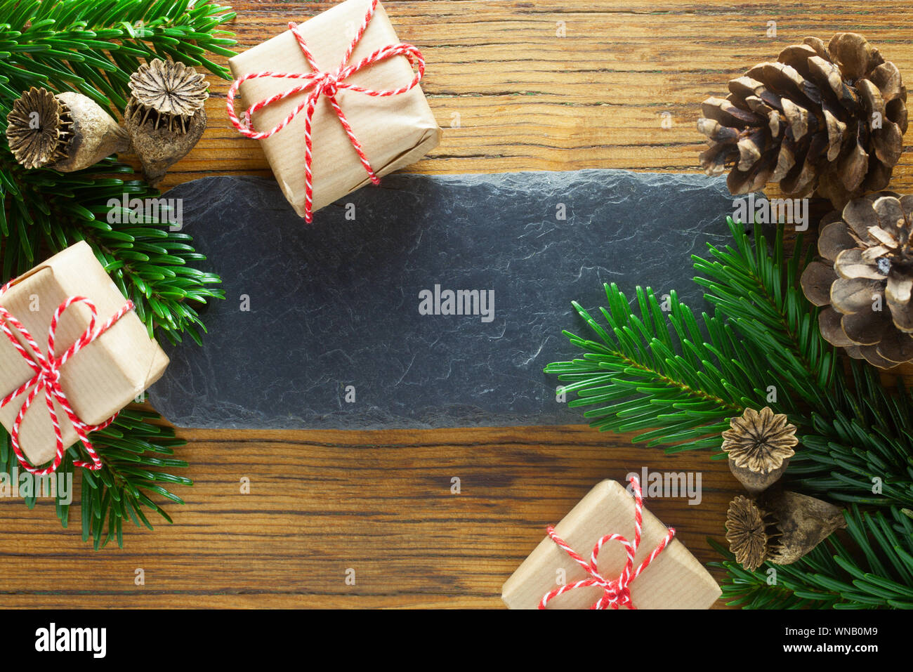 Christmas Festive Decorations On A Grey Slate Stone Or Concrete Stock Photo Picture And Royalty Free Image Image 87094681 from previews.123rf.com