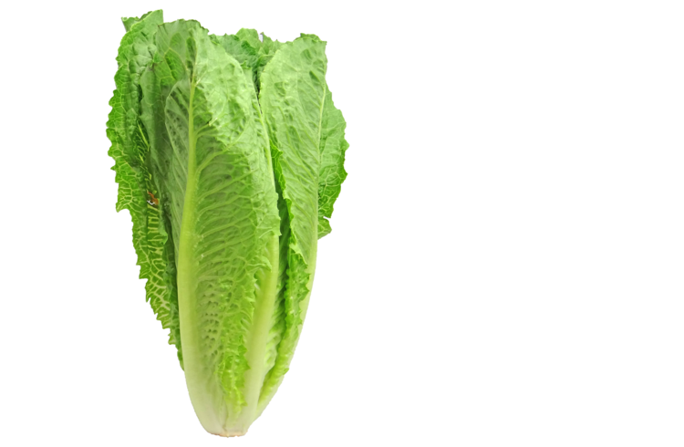 Romaine type lettuces grow as a tall head with thick, ribbed leaves.